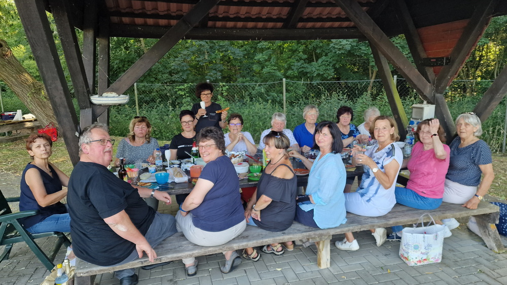 Veröffentlicht 30. August 2025 am 1000 × 563 in 15 Frauen und 1 Mann – Halbjahresabschluss der Gymnastikgruppe.