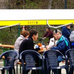 Obwohl die Rudersaison aufgrund des zeitigen Frühlings in diesem Jahr schon begonnen hatte, trafen sich die Vereinsmitglieder zum traditionellen Anrudern am Samstag, dem 05.04.2014 Nachmittag um 14:00 Uhr im Bootshaus. Der Vorstand Ekkart Günther begrüßte alle Teilnehmer und gab einen kurzen Ausblick auf die Saison 2014. Als Taufpate des neuen Einer-Bootes war der Bürgermeister der Verbandsgemeinde an der Finne Götz Ulrich zu Gast. Er taufte das Boot auf den Namen „Bumerang“ und wünschte den Ruderern viele Erfolge in diesem Einer. Neue WRV-Mitglieder erhielten ihre Vereinsausweise und wurden in der Familie der Ruderer herzlich begrüßt. Mit dem Aufziehen der Vereinsfahne und dem Ausruf „Auf den WRV ein dreifaches Hipp-Hipp-Hurra“ ging es gemeinsam in die Boote und auf die Saale. Der jüngste Ruderer war in seinem Einer Nino Faust (8 Jahre) und der älteste Teilnehmer im Doppelvierer Horst Fröhlich (76 Jahre). Das Wetter passte, die einen ruderten und die anderen tranken Kaffee am Kuchenbüfett, welches durch die Frauen der WRV-Gymnastikgruppe unter der Leitung von Petra Fergin organisiert wurde. Dank an alle, die durch ihre Kuchenspende dazu beitrugen.